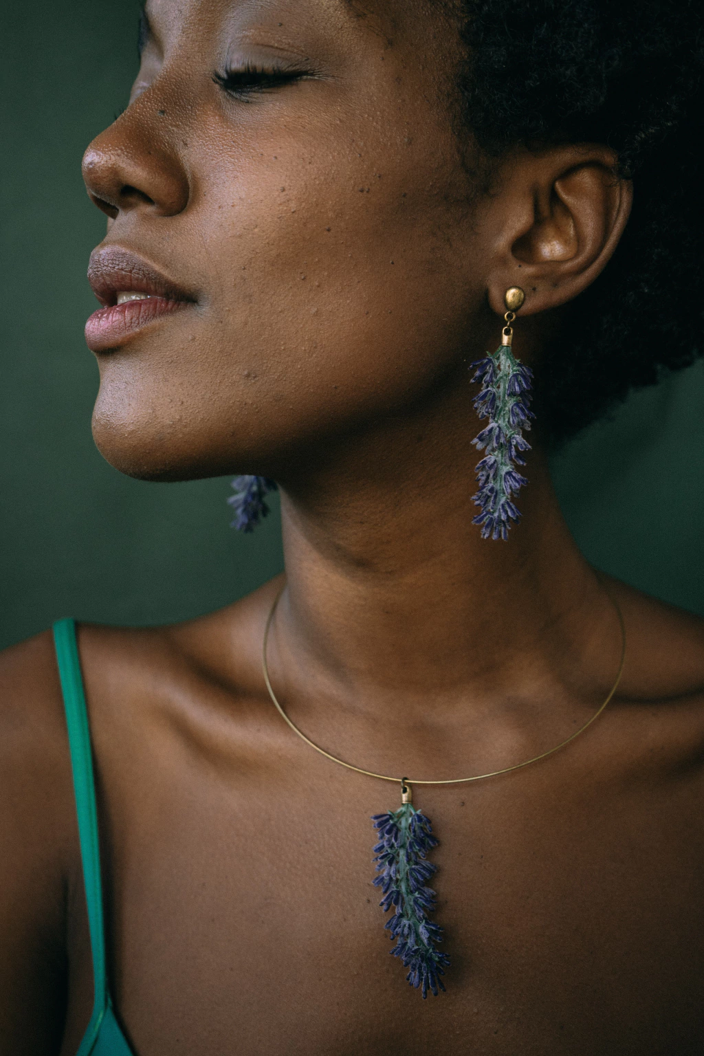 O acabamento em ouro velho confere um toque rústico, enquanto a folha de lavanda traz um elemento orgânico, criando uma harmonia perfeita entre o clássico e o contemporâneo. Ideal para qualquer ocasião, essa peça pode ser usada sozinha ou combinada com outros acessórios, acrescentando um toque de frescor e originalidade ao seu look.